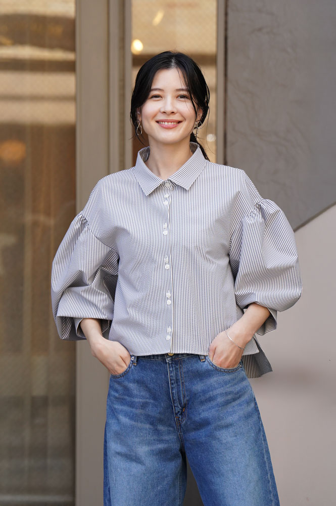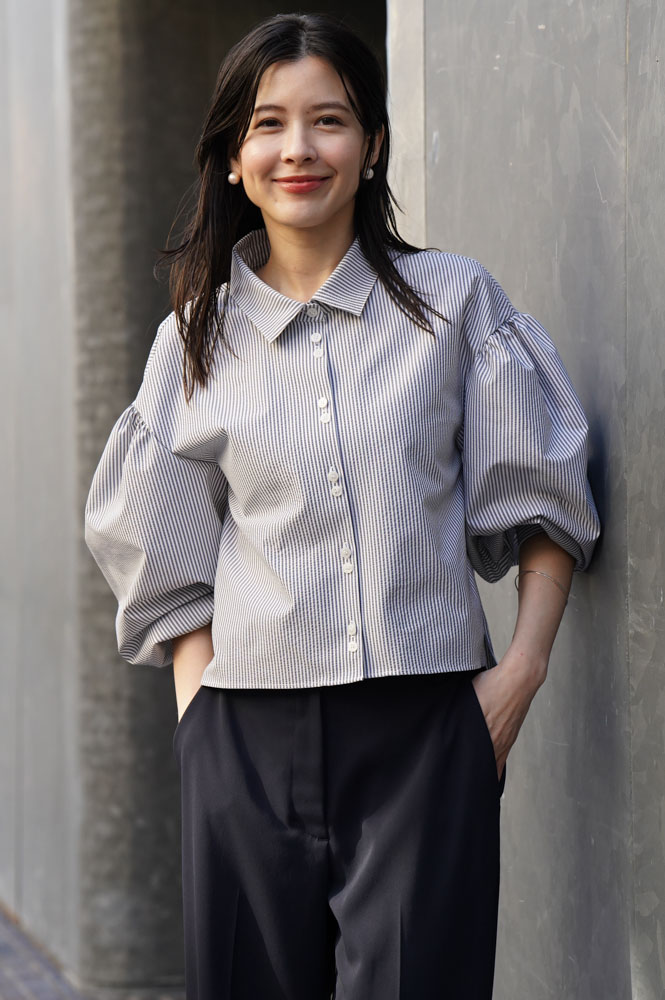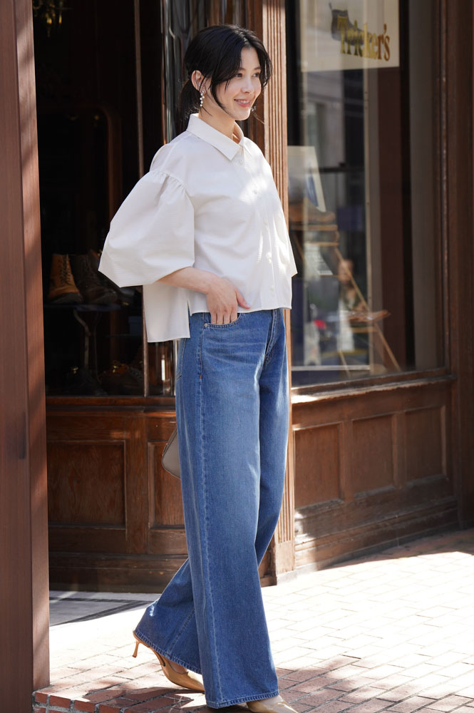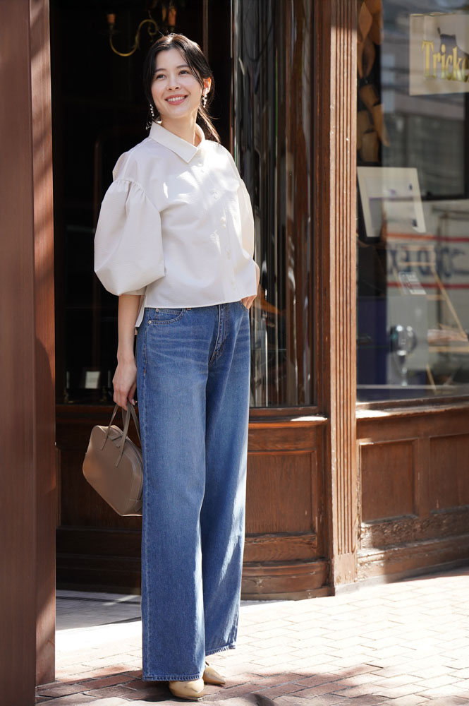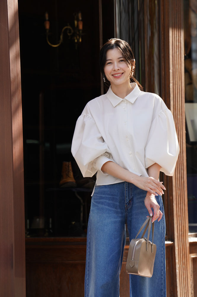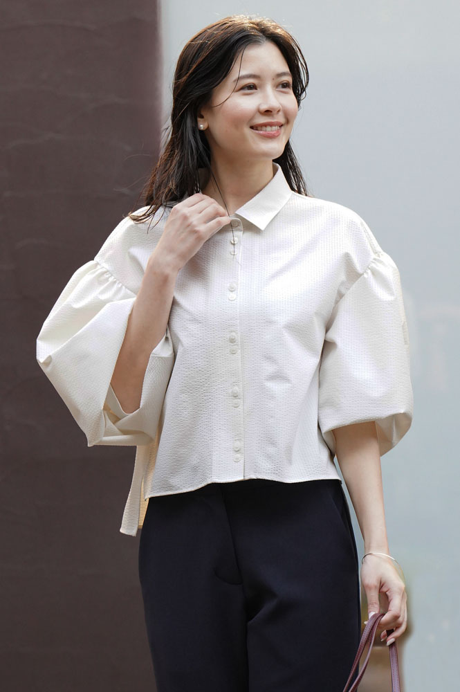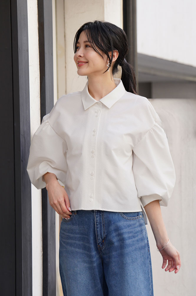 ふんわりと膨らんだボリューミーな袖に対し、身頃はスッキリと仕上げることで、着るだけでサマになる絶妙なバランスに。