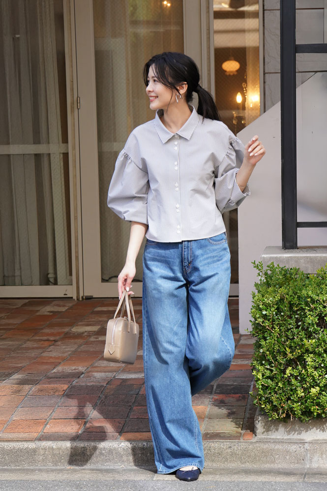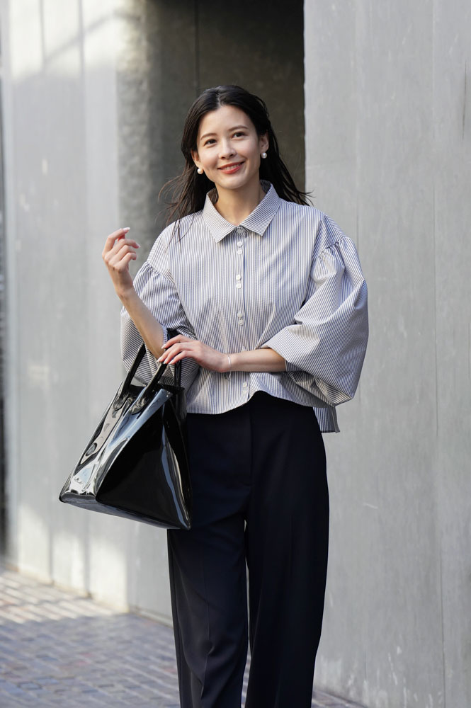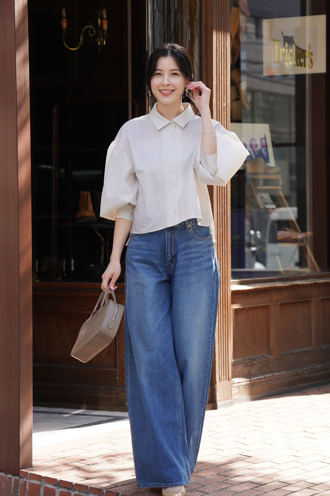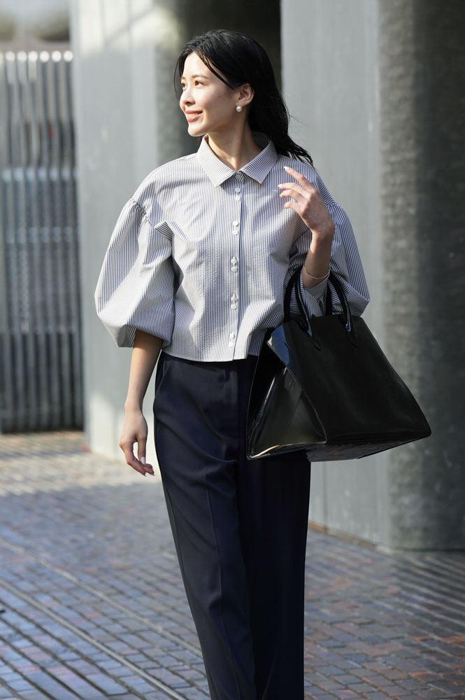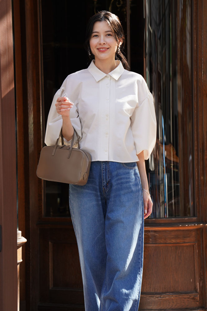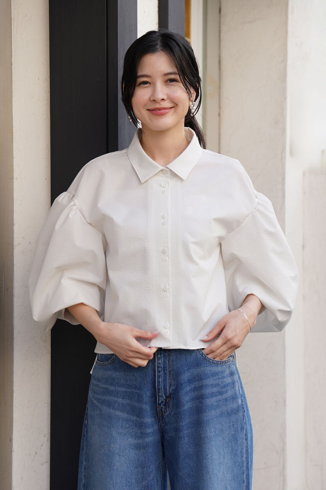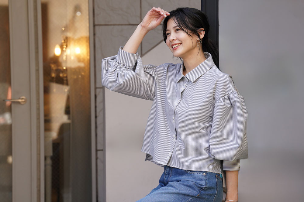 ふんわりと膨らんだボリューミーな袖に対し、身頃はスッキリと仕上げることで、着るだけでサマになる絶妙なバランスに。
