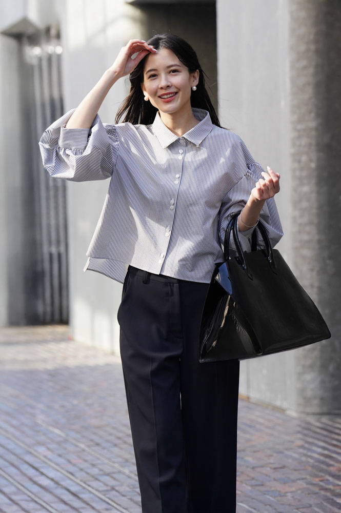 トレンド感と上品さを兼ね備えた大人シャツ。