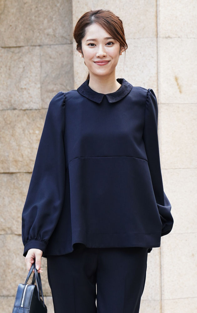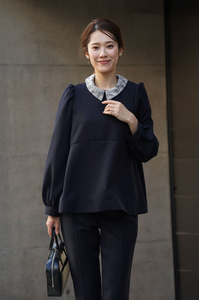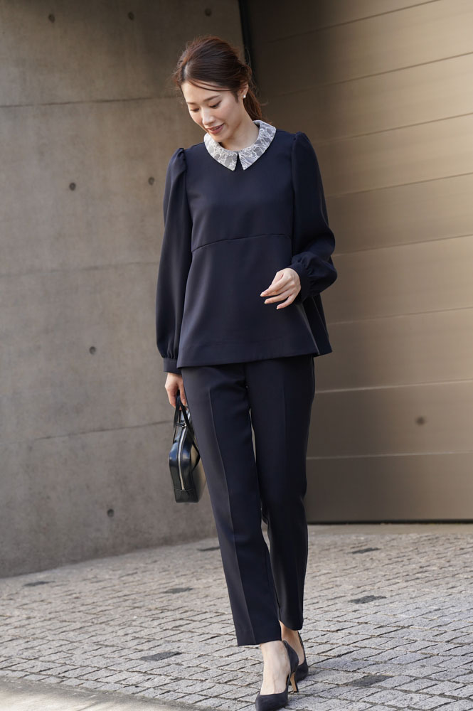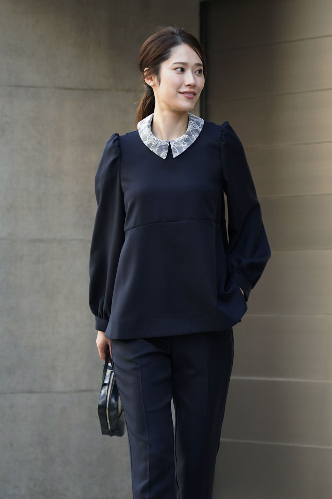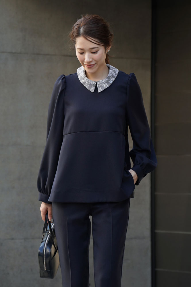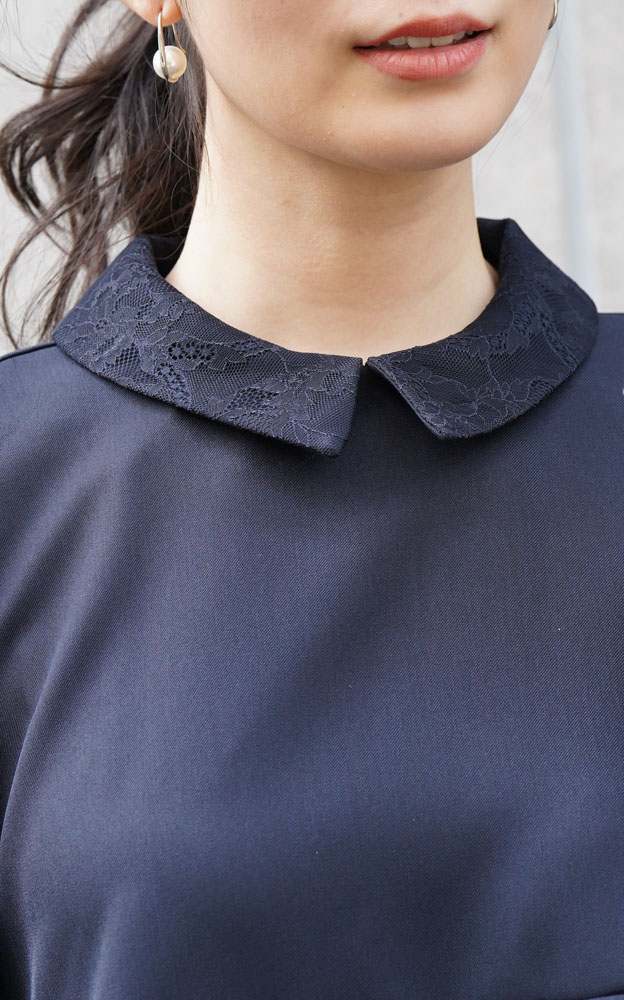 レース襟を取り外せば、スッキリとしたクルーネックで清楚な雰囲気に。