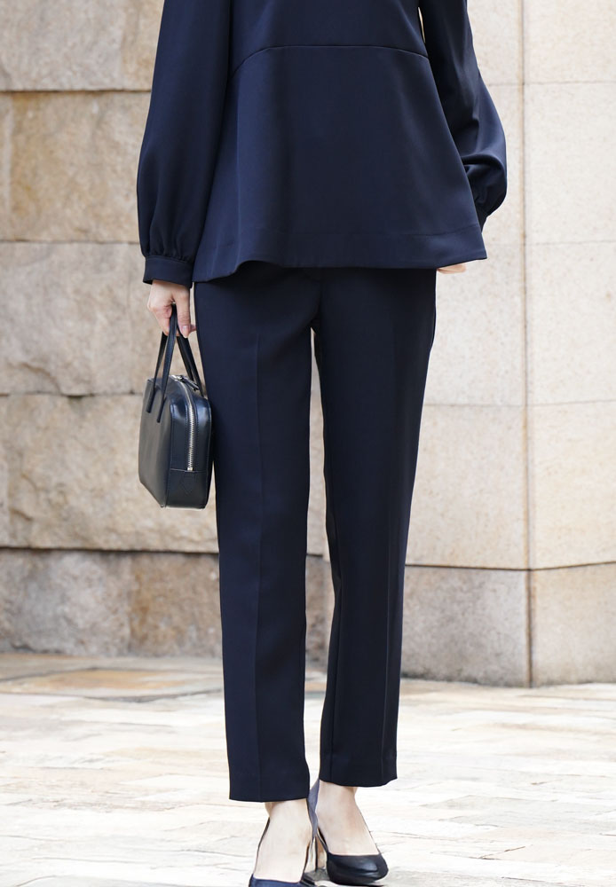 センタープレスが脚のラインを美しく整え、シャープ感がありながらも女性らしさも漂う1本。