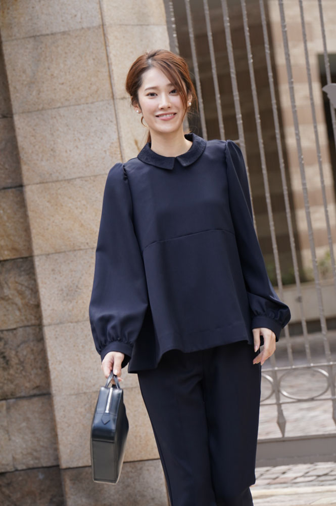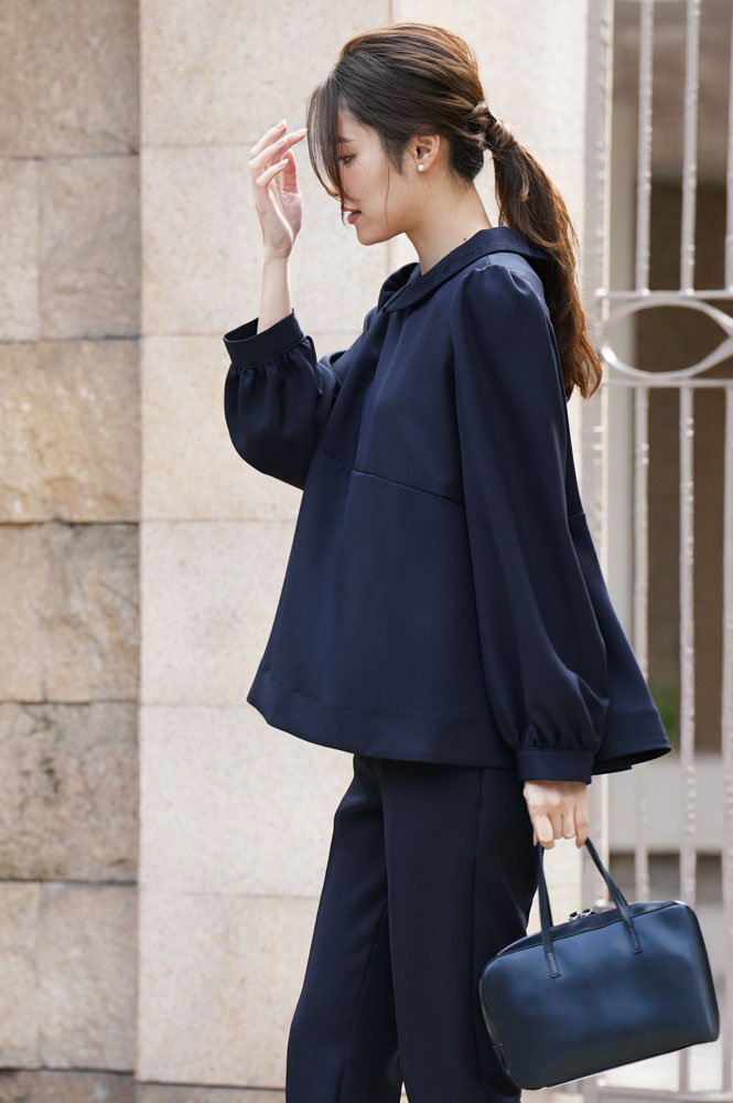 【ヴィリーナ】襟取り外し可能/ラナンブラウス(ネイビー)