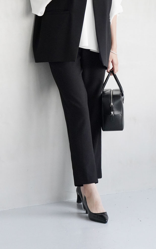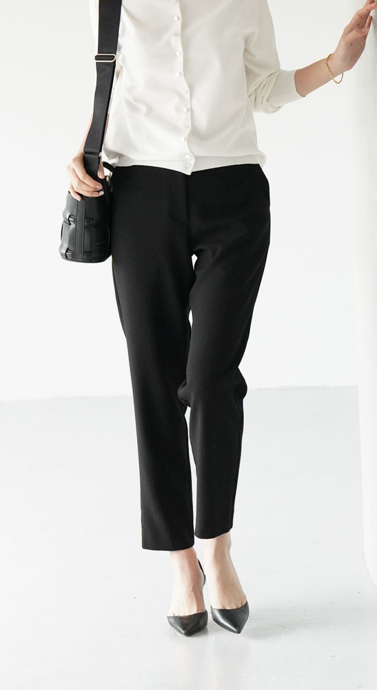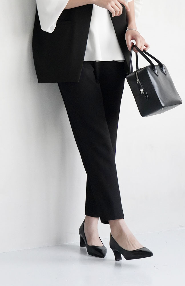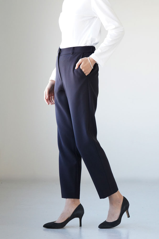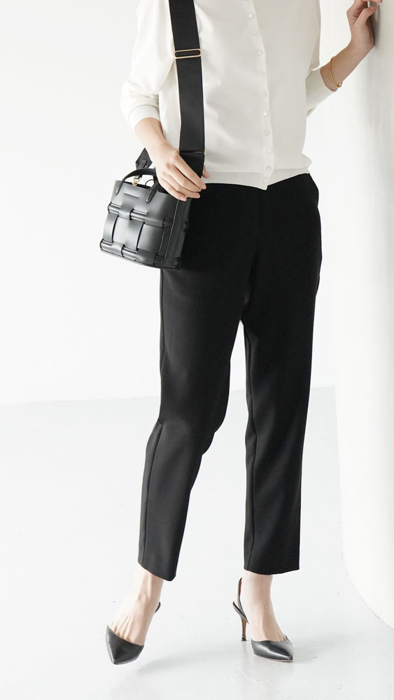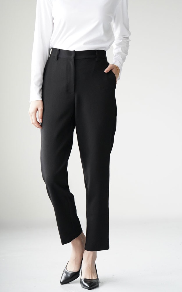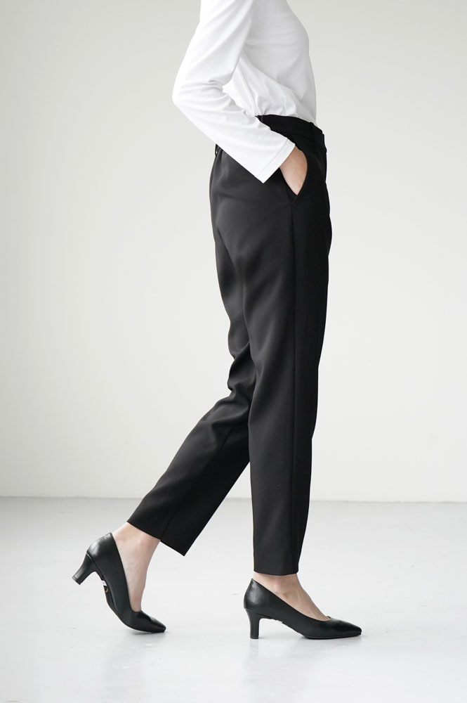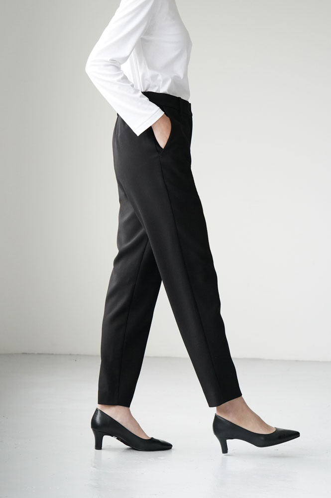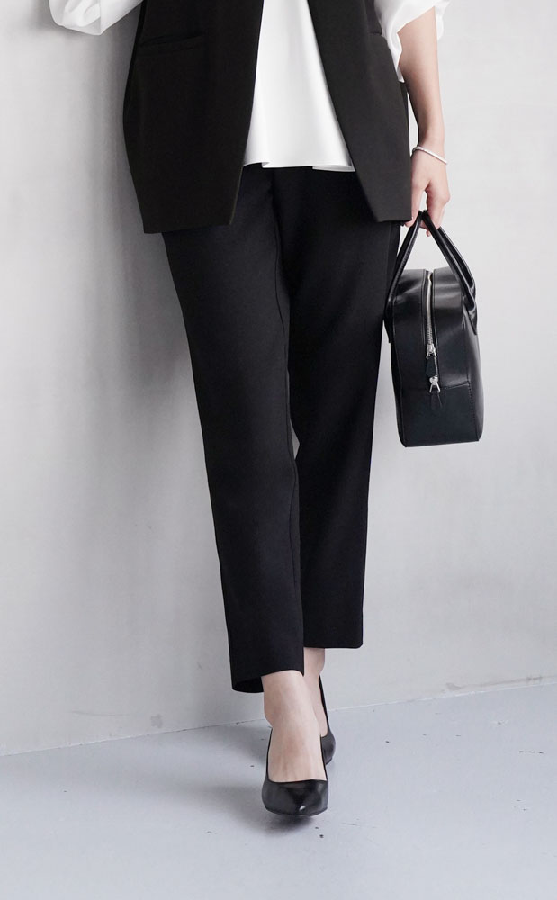 スリムではないけれどキレイ見えするスマートなテーパードラインが、脚のラインを自然に整えます。
