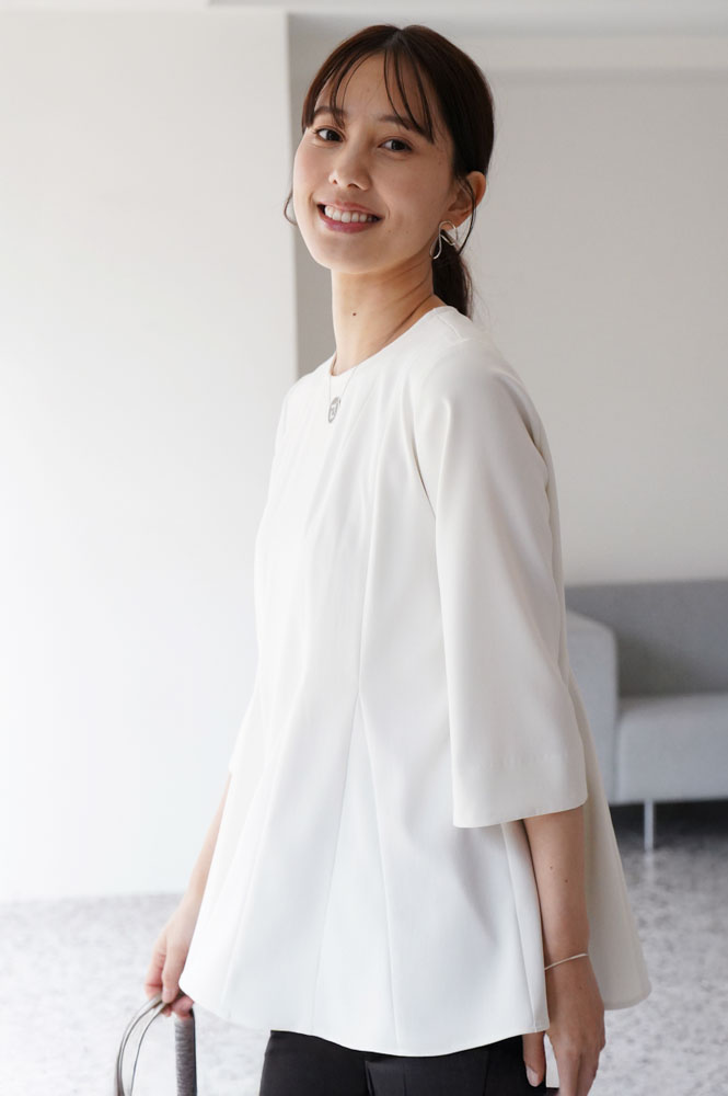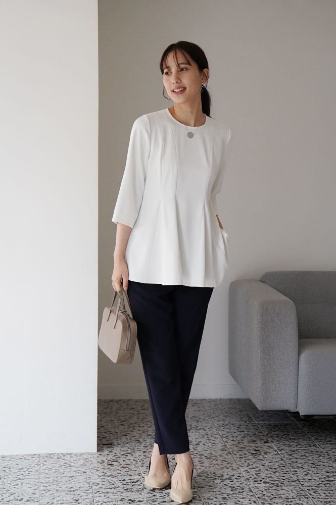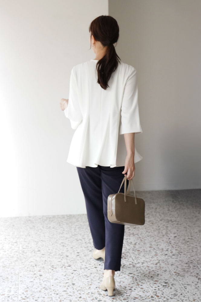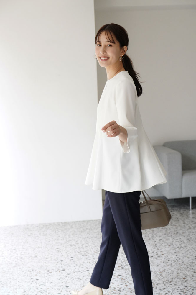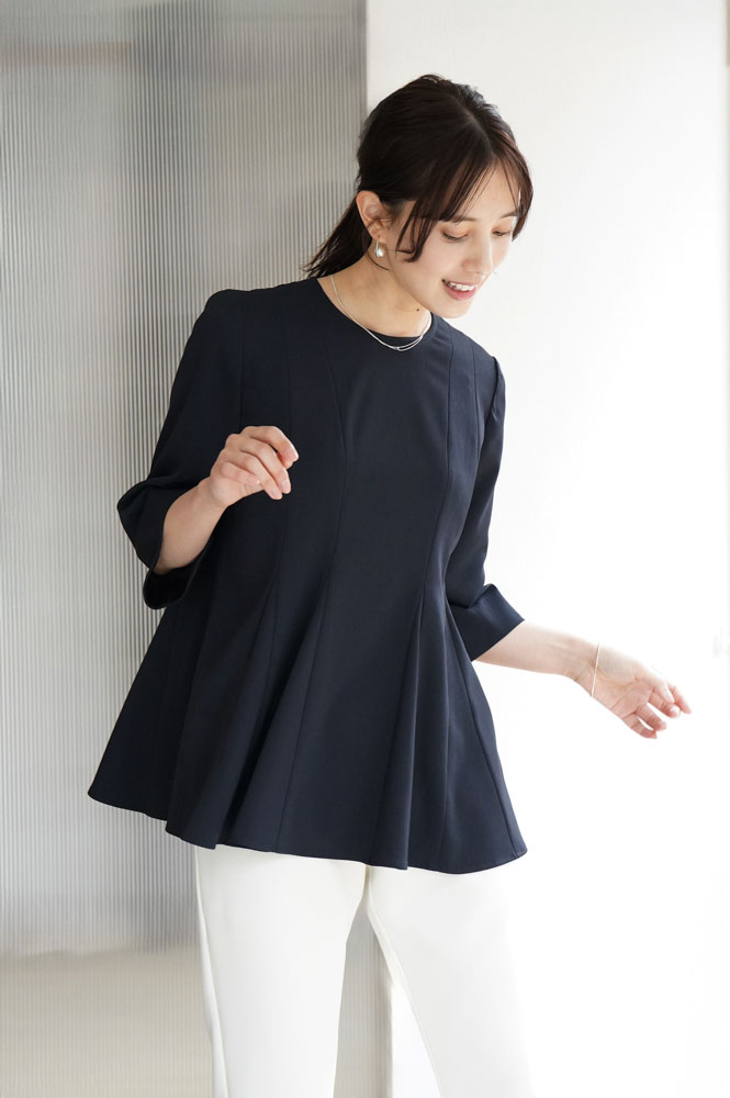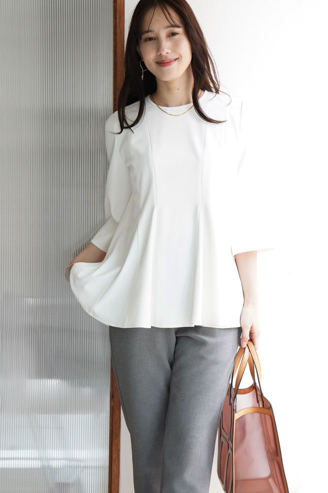 洗練された存在感と、程よく華やぎのあるシルエットがどの角度からもキレイ見えする “ベルペプラムブラウス”