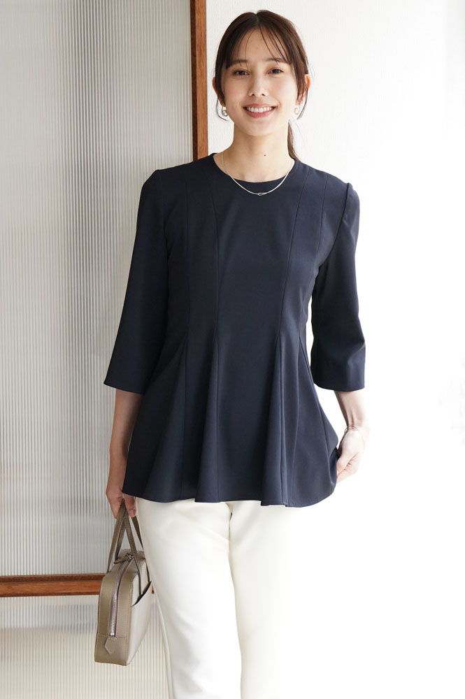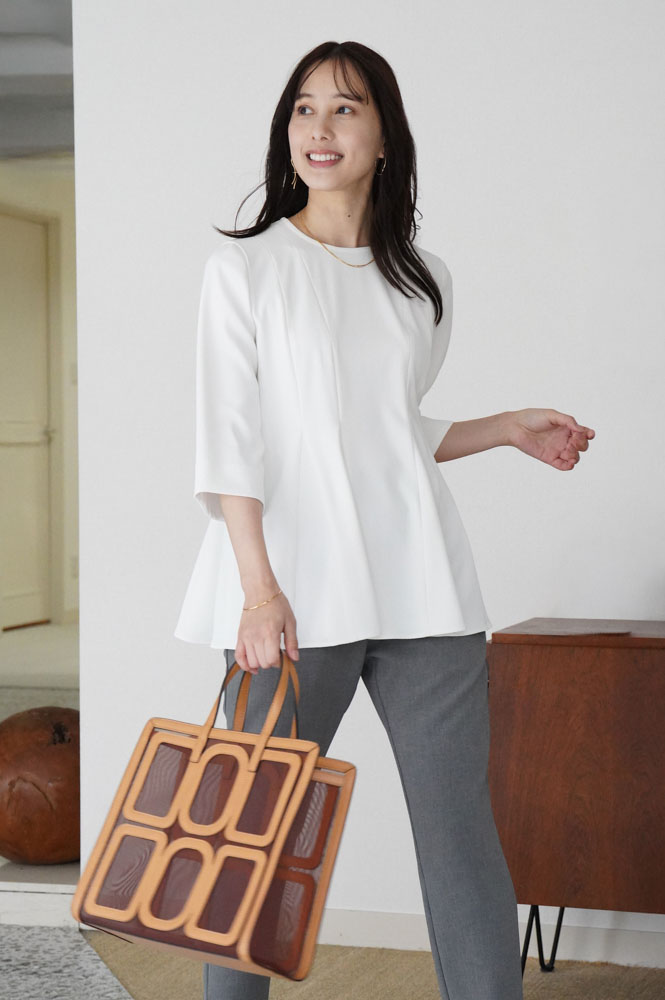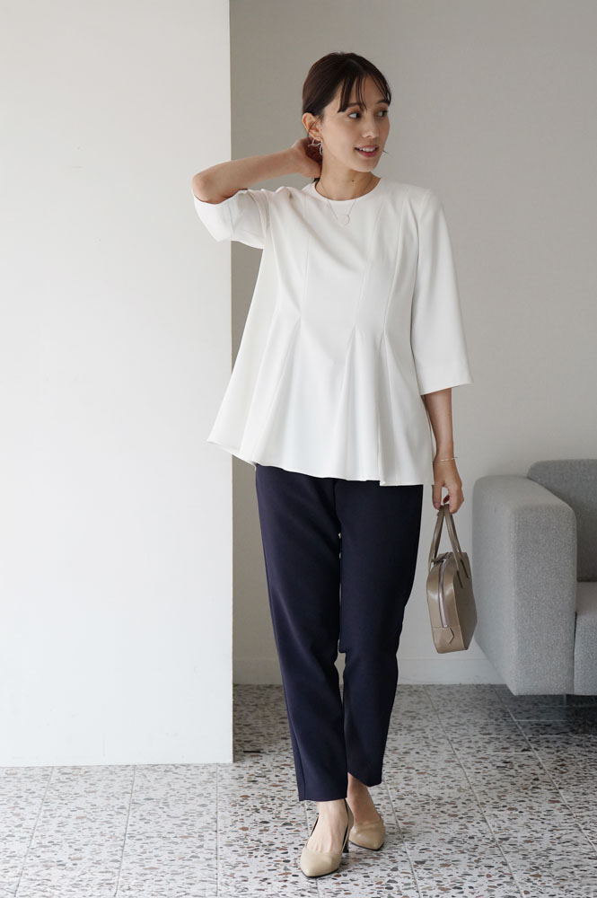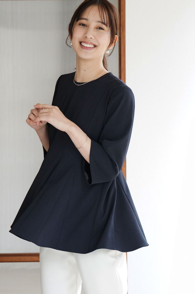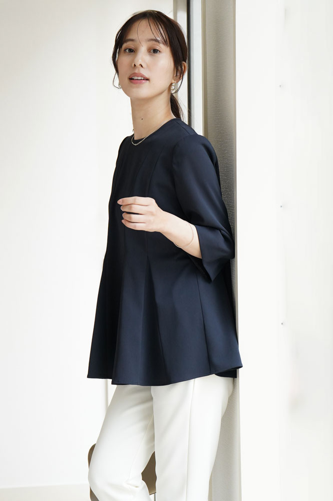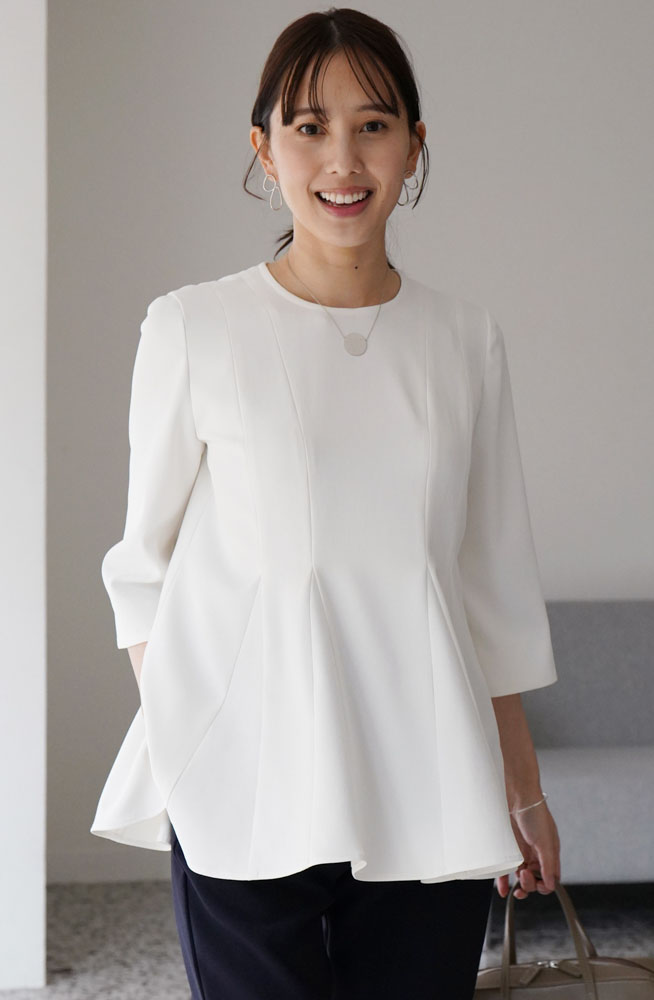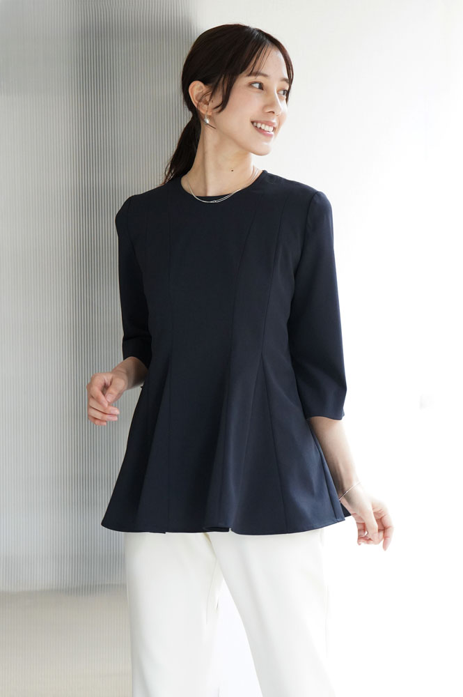 洗練された存在感と、程よく華やぎのあるシルエットがどの角度からもキレイ見えする “ベルペプラムブラウス”