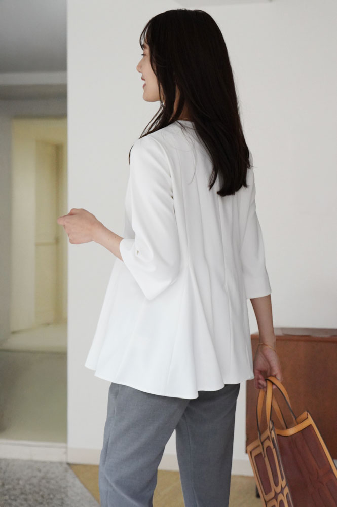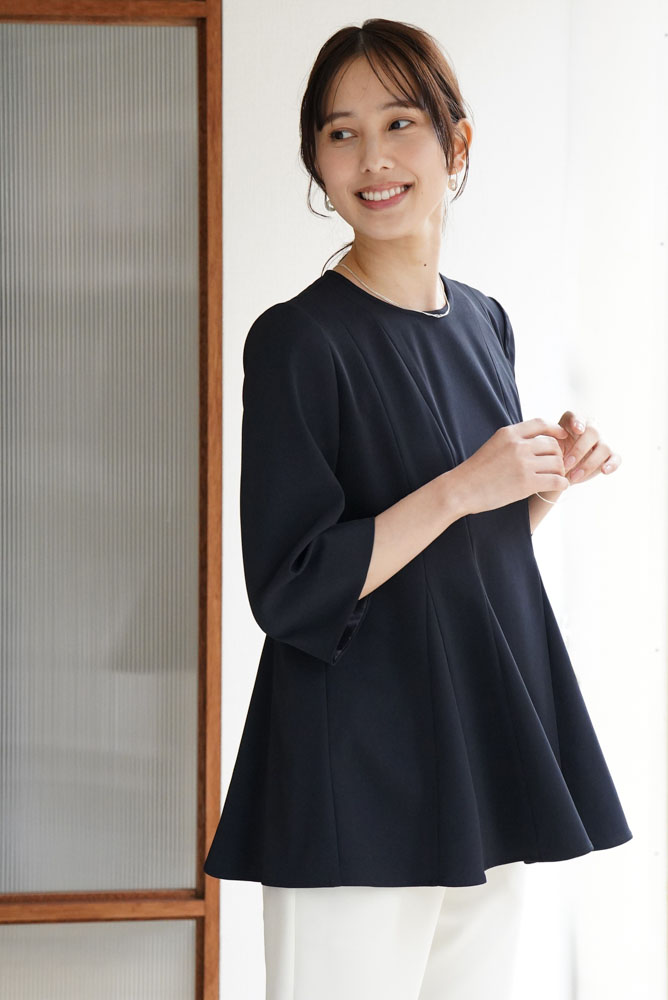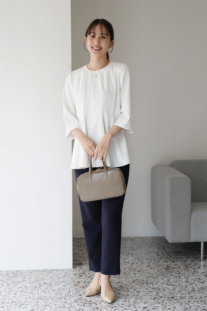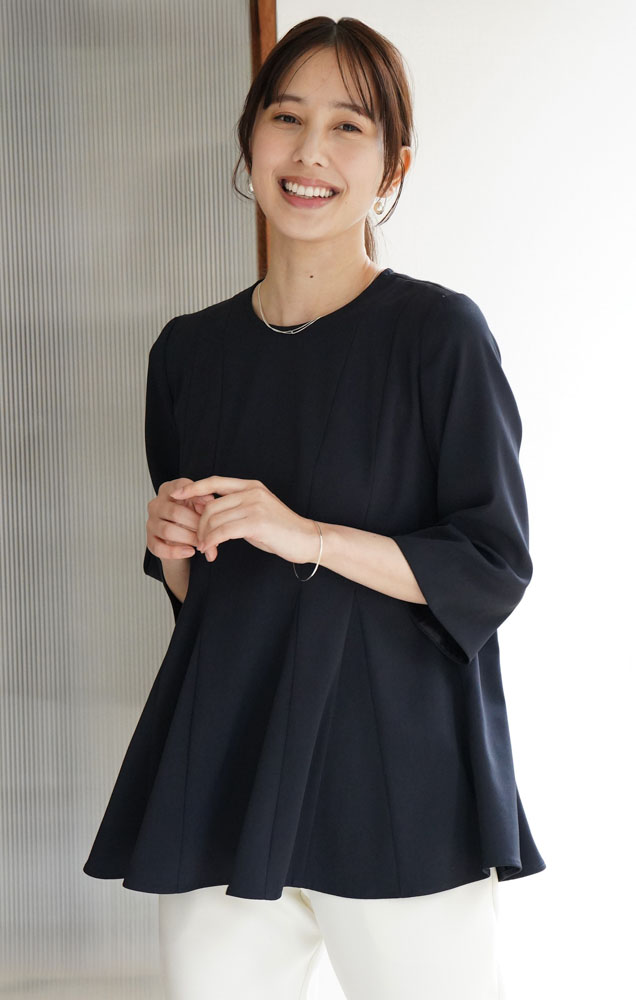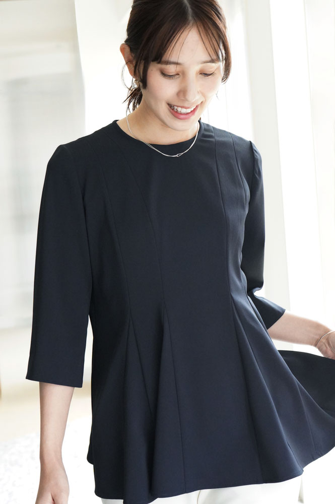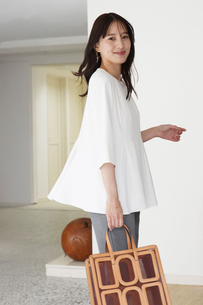 洗練された存在感と、程よく華やぎのあるシルエットがどの角度からもキレイ見えする “ベルペプラムブラウス”