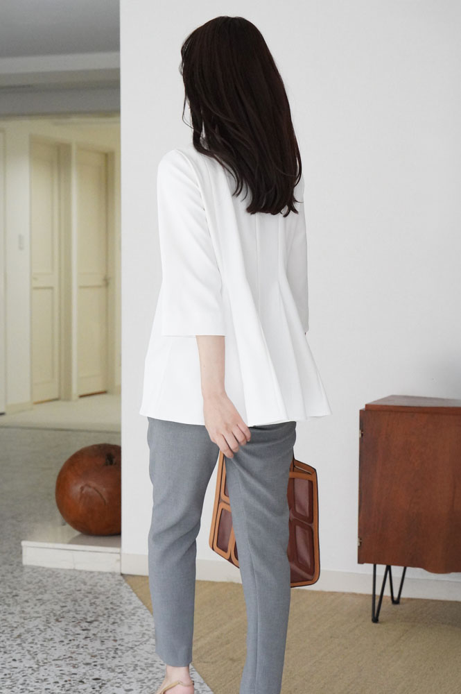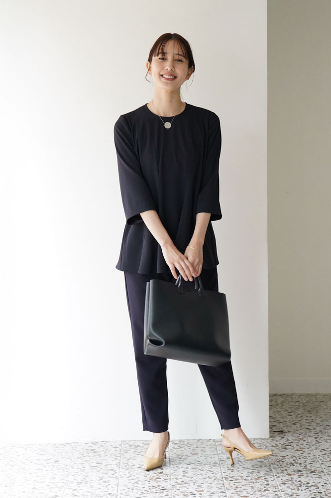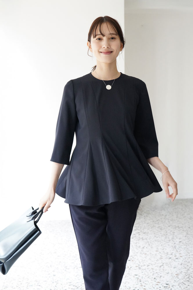 動く度に揺れるペプラムが優雅さを放ち、着心地も見た目にも優れた素材を厳選。