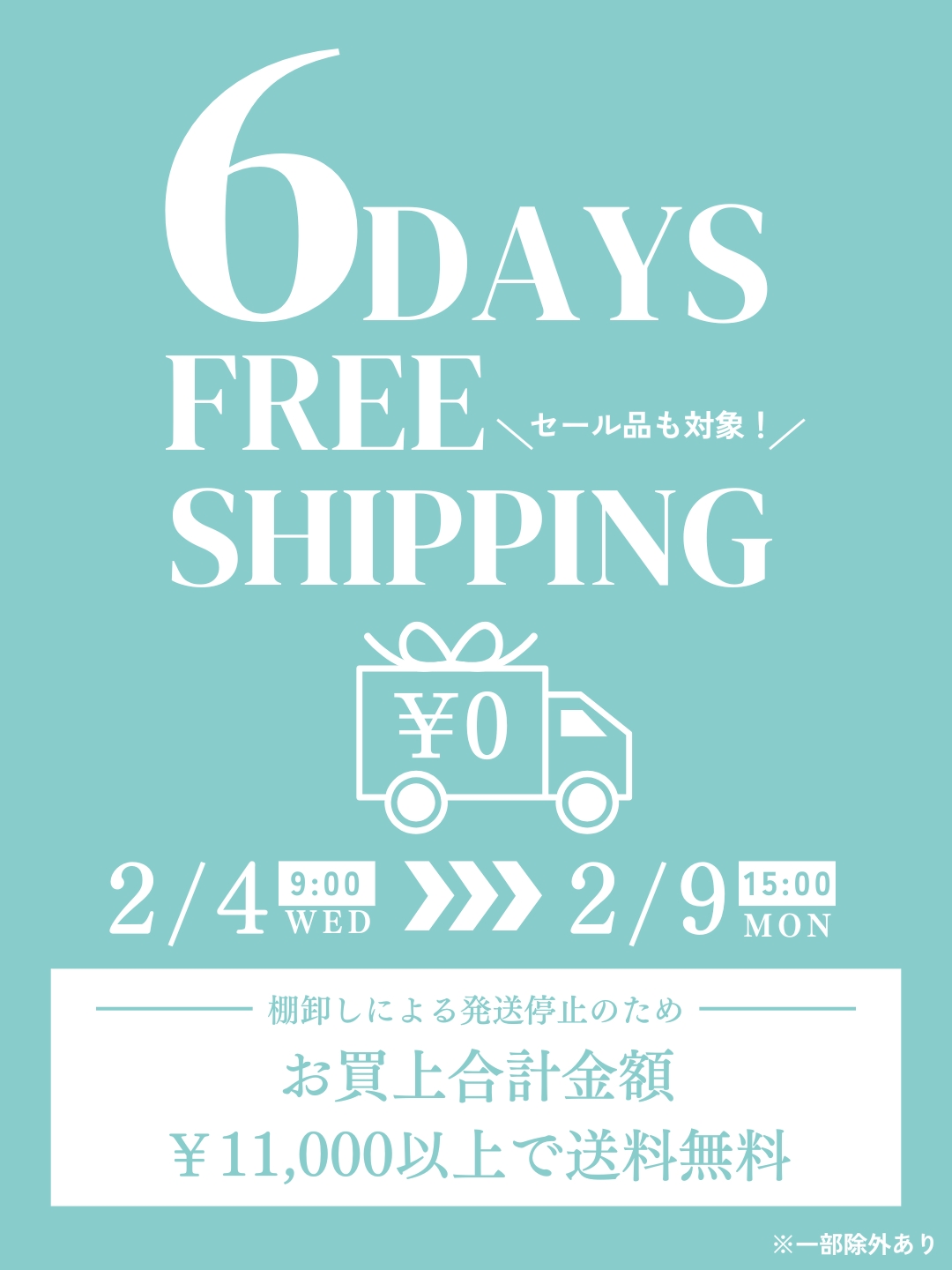 2月4日(水) 9時から2月9日(月)15時までまでのご注文におきまして、